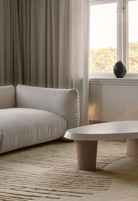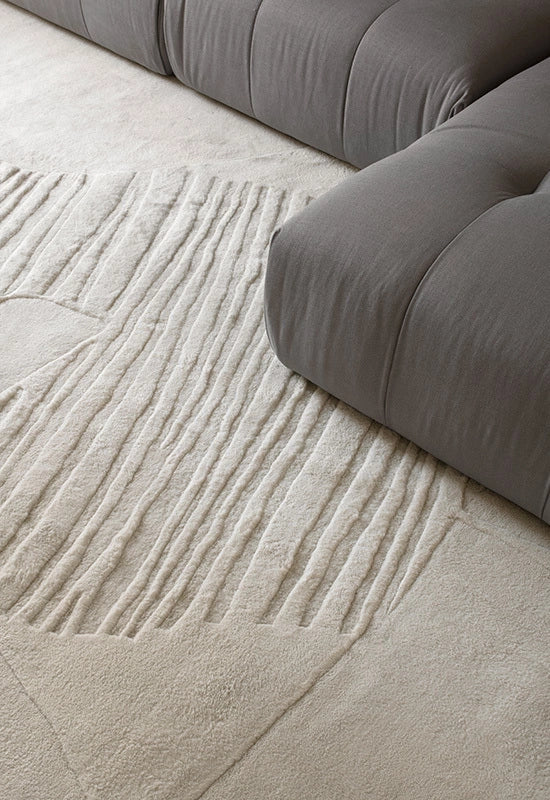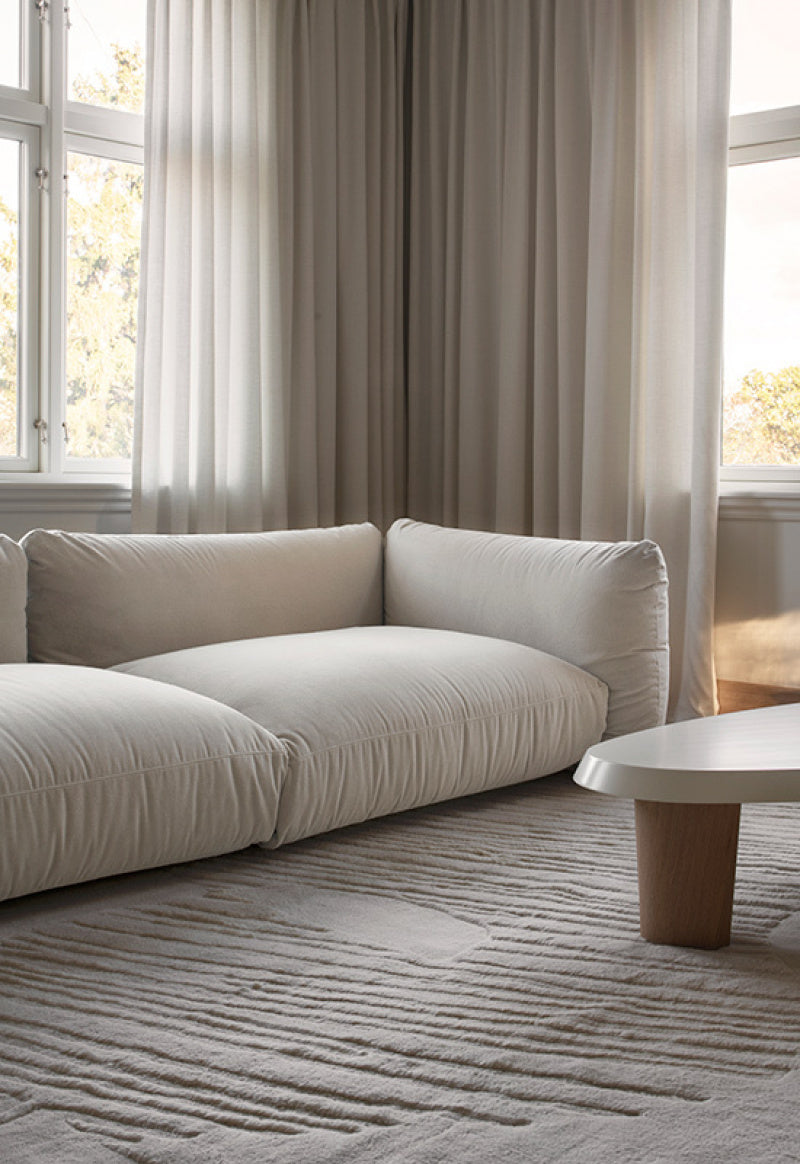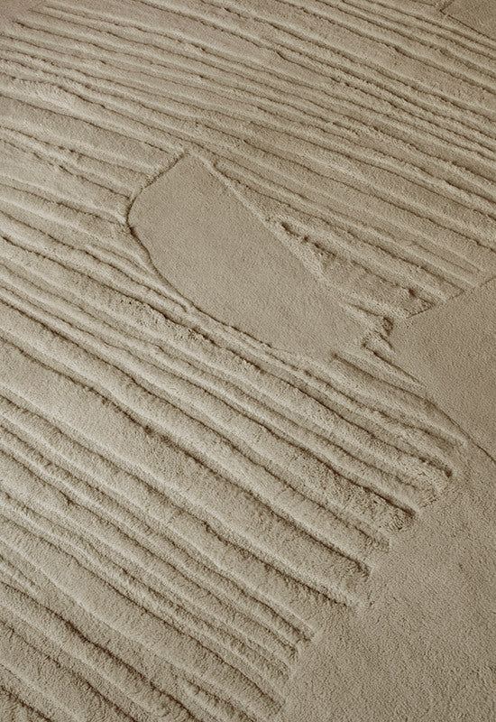 Den är tillverkad av nyzeeländsk ull av högsta kvalitet och finns i färgerna Dusty Mustard, Bone White & Francis Pearl. Mattan är vävd för hand med högt trådantal och har en undersida i dubbla lager, vilket gör den till det perfekta valet för exklusiva hem. Eftersom varje matta vävs individuellt kan det förekomma variationer i storlek och färg, något som ger varje kund en unik produkt.