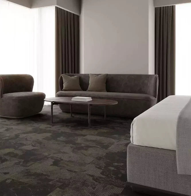 Textilplattor läggs smidigt till en heltäckande matta