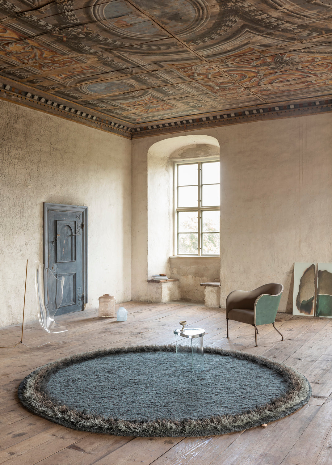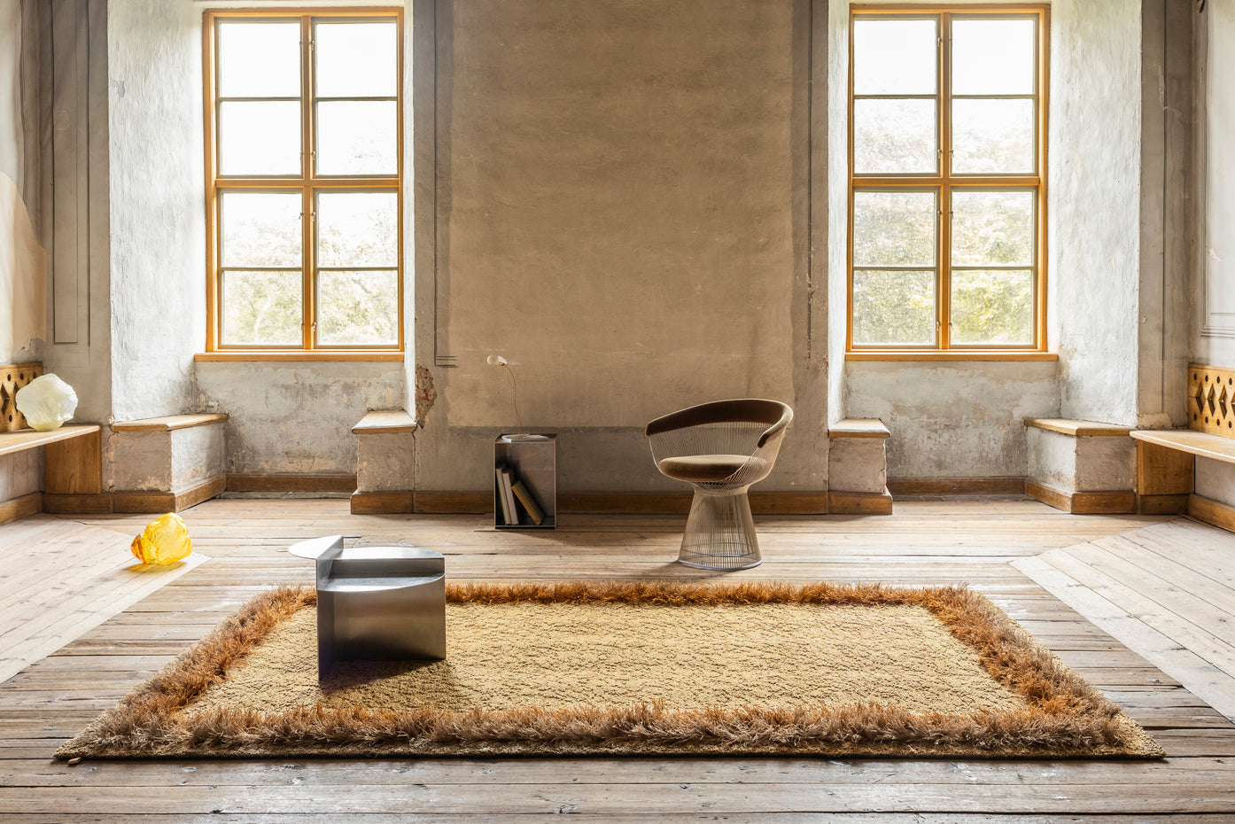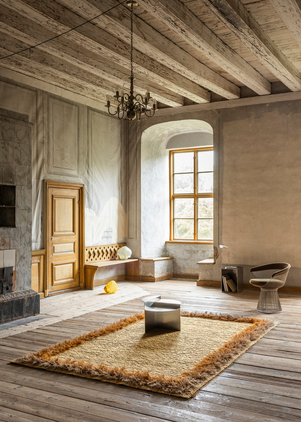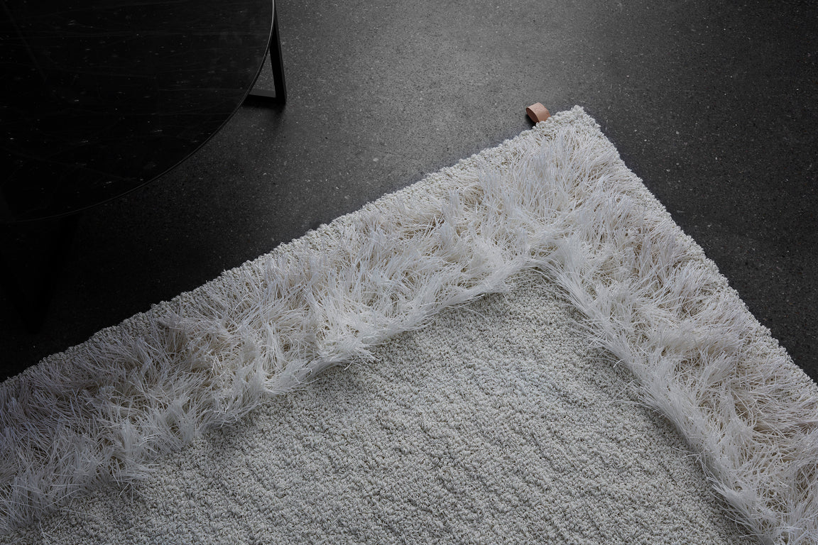 Feather är en del av Kasthalls mattkollektion, som kombinerar ull- och linbouclé för att skapa en unik yta som skiftar färgtoner och reflekterar ljus som fjädrar. Inspirerad av fåglars fjäderskrudar och rörelse, har denna design en lekfullhet med sin rufsiga linfrans som ger en djärv touch utan att förlora elegansen.