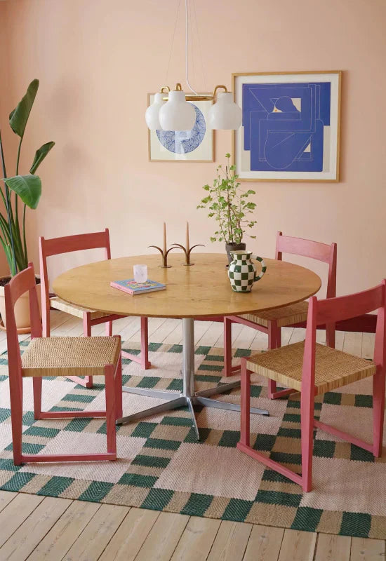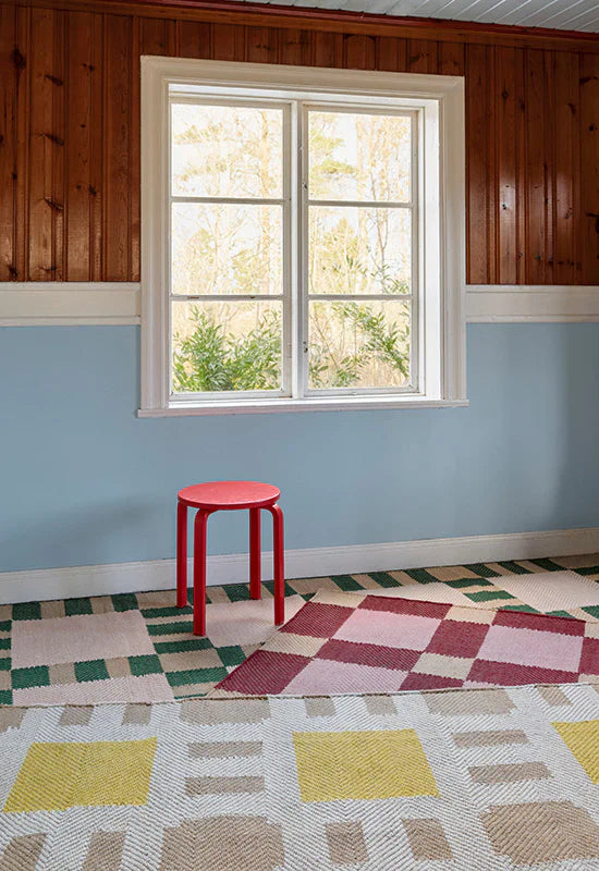 LAYERED Kollektionen med Evelina Kroons tydliga, grafiska signatur. Målbilden var att skapa en färgstark, hållbar och positiv kollektion i naturlig växtfibrer till en demokratiskt prisbild. Resultatet är fyra jutemattor som är självklara i all sin enkelhet. Jutemattor är det perfekta valet för platser där man vill ha en lite mjukare och mer ombonad känsla som till exempel vardagsrum, sovrum eller matplatser.