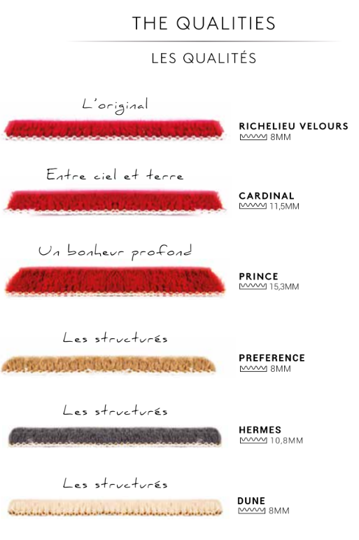 Richelieu ingår i en serie gång- & trappmattor från Louis de Poortere med samlingsnamnet Richelieu. Richelieu finns antingen som enfärgad eller två-färgad med bård.