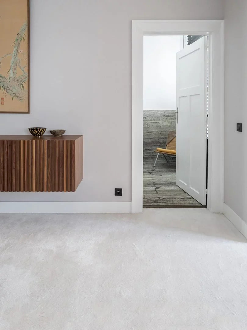 Richelieu är en Wiltonvävd matta och har den högsta slitageklassningen, 33. Richelieu tillverkas i en blandning med 80 % ull och 20 % polyester. En materialkomposition som har visat sig vara den allra bästa för trappmattor. Alla Richelieu syr vi in för hand i en sväng trappa.